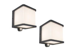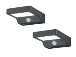 Perel 2er Set LED Solar Außenwandleuchten Wasserdicht Mit Bewegungsmelder, Downlights
