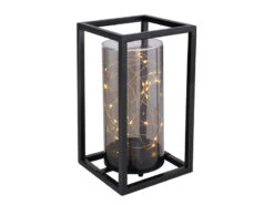 Globo Kleine LED Solarlaterne Mit Rauchfarbigem Lampenschirm & Metallkäfig, Höhe 25cm