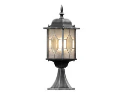 Konstsmide LED Sockelleuchte Laterne Außen Im Landhausstil, Schwarz-Silber, Höhe 54cm