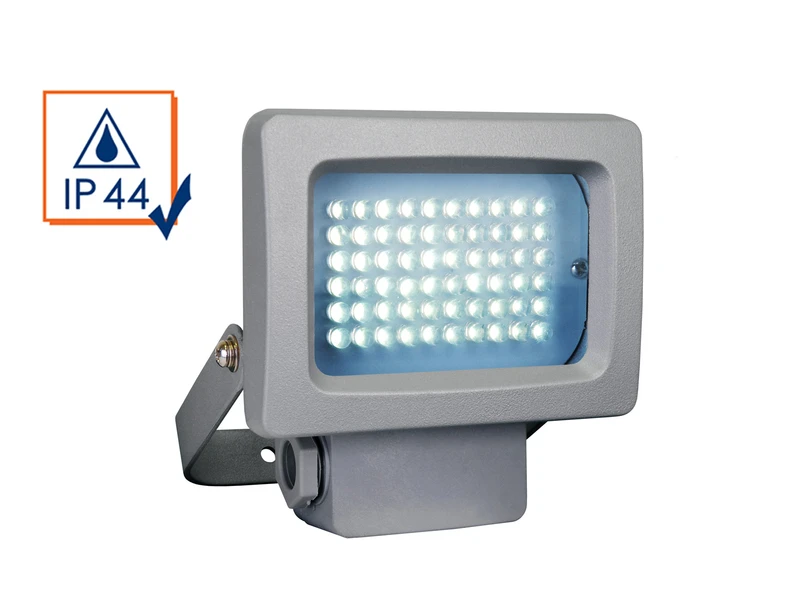 Gefertigt ist der Außenscheinwerfer aus robustem, aluminiumfarbigen Metall. Mit einer Größe von 9,8 x 10 x 5 cm überzeugt er zugleich mit einer Leistung von 3,6 Watt und 258 Lumen in kalt weiß des fest verbauten LED Leuchtmittels.