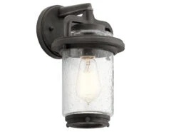 Im traditionell englischem Stil gehalten, erinnert diese Outdoor Pendelleuchte an Laternen aus vergangenen Zeiten um 1900. Der Lampenschirm besteht aus mundgeblasenem Amberglas. Die detailreichen Metallelemente in Bronze sind handbemalt und verleihen dieser Außenleuchte den typischen antiken Laternenlook.