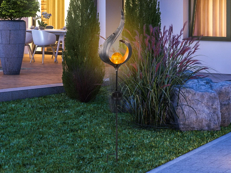 Globo Kunstvolle LED Solarleuchte Metall Bronzefarben Mit Glaskugel, Erdspießleuchte