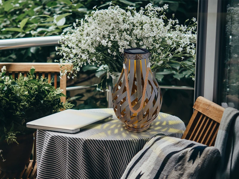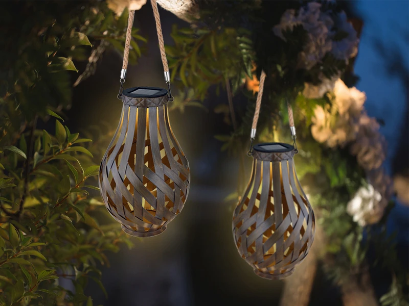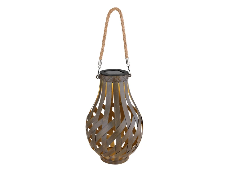 Die 27 cm große Solarleuchte verfügt über ein Bambusseil, welches es erlaubt, sie sowohl in hängender als auch in stehender Position (z.B. auf Tischen) zu bewundern. Die sich überlappenden Metallstreifen werden von oben mit dem LED-Leuchtmittel beleuchtet, wodurch ein wunderschönes Muster projiziert wird. Das angenehm warmweiße Licht (3000 Kelvin) des fest verbauten LED-Leuchtmittels sorgt zusätzlich für eine stimmungsvolle Atmosphäre in Ihrem Garten, auf der Terrasse oder dem Balkon.
