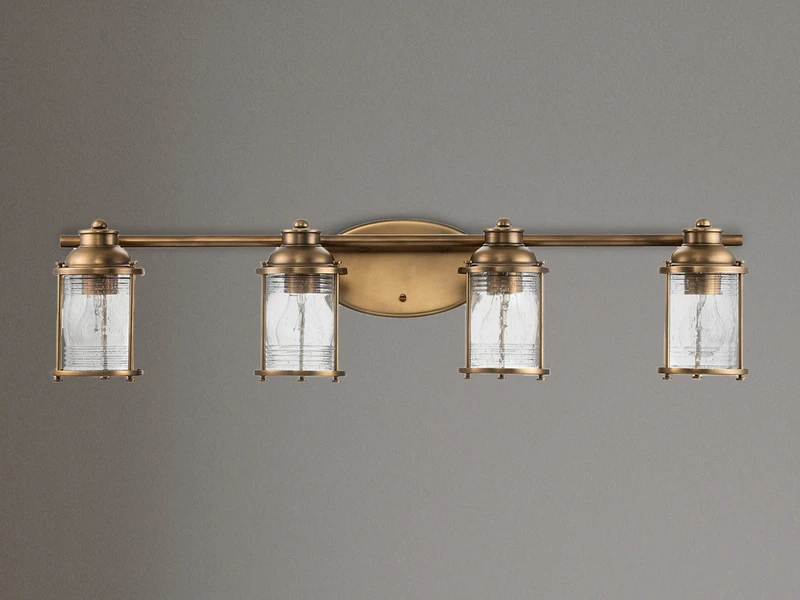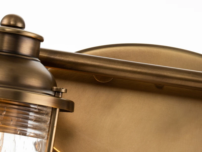 Langweilige Badbeleuchtung war gestern! Diese ausgefallene Innenleuchte im Industrial Style besticht durch ihr ausgefallenes Design und ihre hochwertige Verarbeitung. Der Korpus der Leuchte besteht aus Messing farbigem Stahl, der Lampenschirm aus strukturiertem Glas.