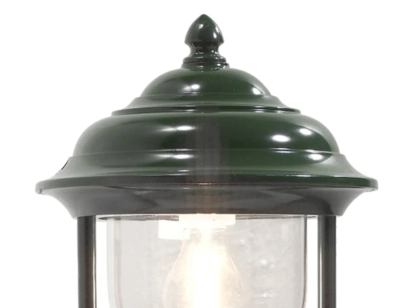 Die Kombination aus grün lackiertem Aluminium und klarem Acrylglas ergänzt bei diesem 2er-Set Sockelleuchten den modernen Charakter.