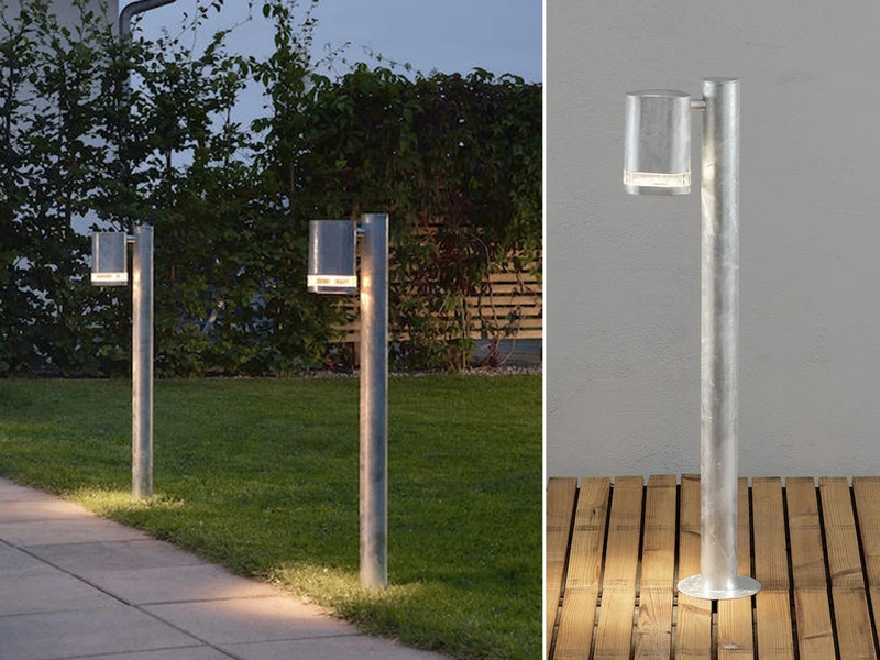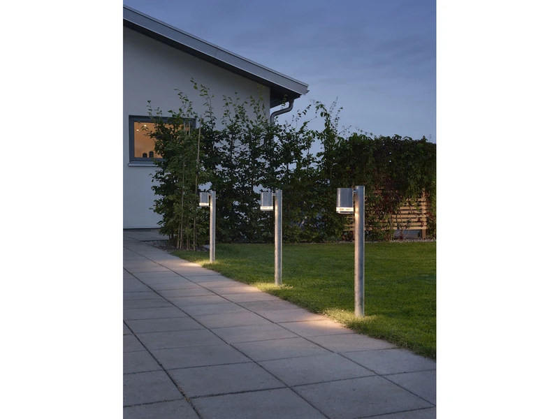 Diese exklusive Wegeleuchten passen sich durch ihr ausdrucksvolles Design und das galvanisierte Stahl fast jedem Außenbereich an. Ob im Außenbereich an Hauseingang, der Terrasse, der Zufahrt oder an Treppen.