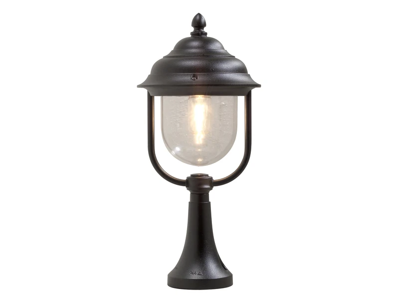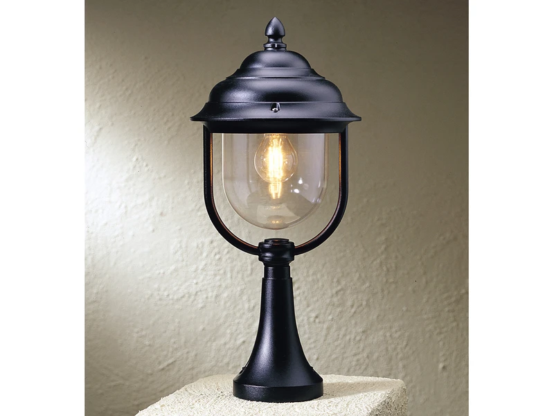 Der Korpus der Laterne außen besteht aus schwarz lackiertem Aluminium, das klare Acrylglas unterstreicht den Laternen Charakter der Leuchte.