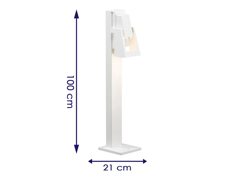 Diese Wegeleuchte oder auch Pollerleuchte genannt, ist aus weiß lackiertem Aluminium und klarem Glas gefertigt.