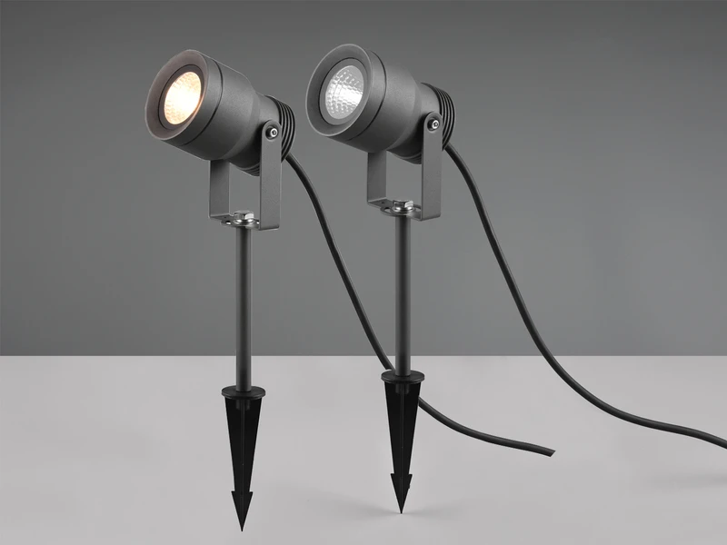 Dank der Schutzart IP65 ist die Leuchte äußerst witterungsbeständig. Das Integrieren der Leuchte in bestehende Gartenkonzepte ist durch die dezente Farbgestaltung in Anthrazit und der Zuleitung von 5 Metern mühelos umsetzbar.