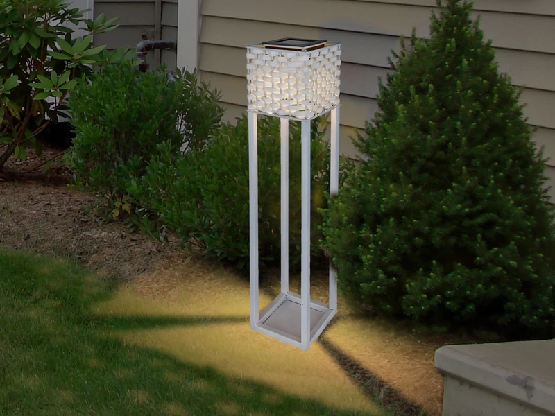 Diese quaderförmigen Außenstehlampen ziehen schon im Hellen alle Blicke auf sich. Doch bei Dunkelheit kommt das absolute Highlight zum Vorschein: Der Korbgeflecht Lampenschirm sorgt für glanzvolle Lichtspiele und stimmungsvolle Außenbeleuchtung.