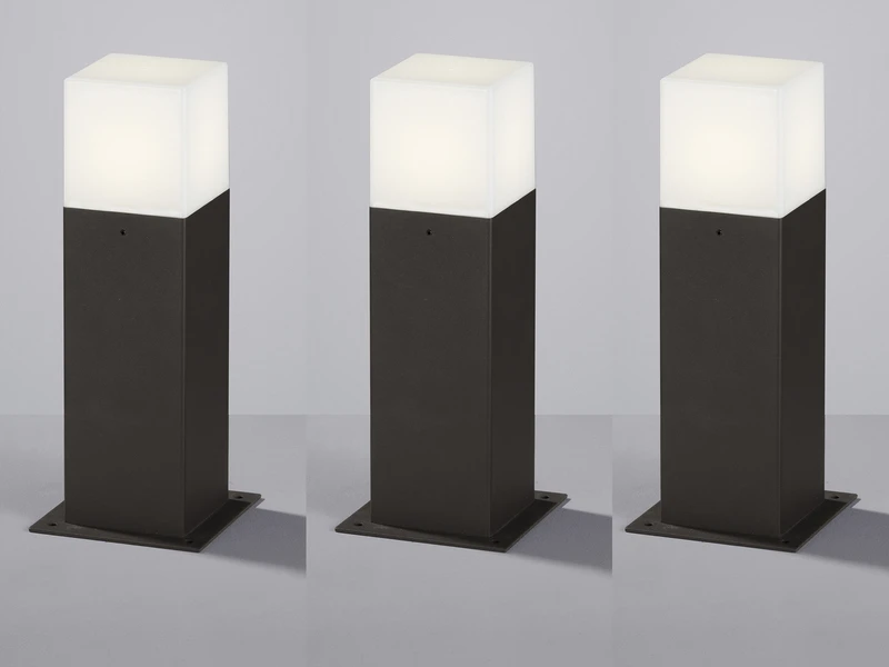 Die LED Sockelleuchte im 3er Set passt sich durch ihr modernes Design fast jedem Bereich an und ist daher die ideale Außenbeleuchtung für den Hauseingang, Einfahrten oder für die Terrassen. Durch den nach allen Seiten gerichtete Lichtstrahl erhalten Sie eine Ausleuchtung mit schönem Lichteffekt.