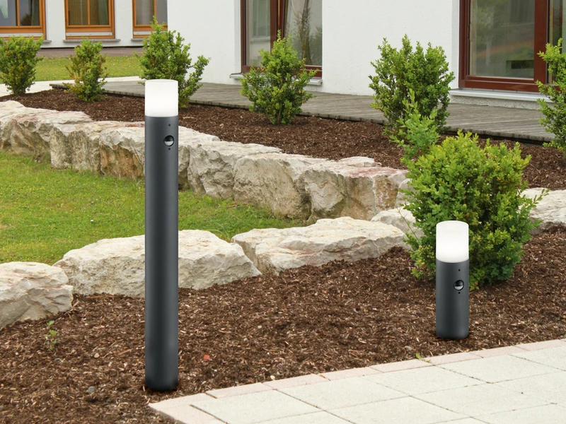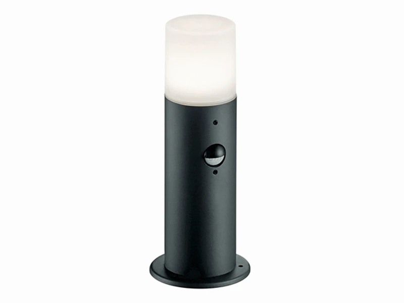 Die Sockelleuchte ist mit einem Bewegungsmelder ausgestattet, dieser hat einen Erfassungswinkel von 120° bei einer Reichweite von max. 8 Metern.
