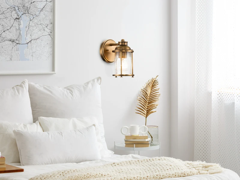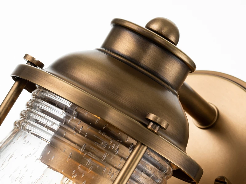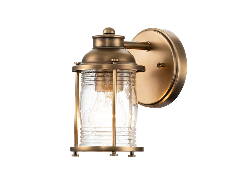Langweilige Badbeleuchtung war gestern! Diese ausgefallene Innenleuchte im Industrial Style besticht durch ihr ausgefallenes Design und ihre hochwertige Verarbeitung. Der Korpus der Leuchte besteht aus messing farbigem Stahl, der Lampenschirm aus strukturiertem Glas.