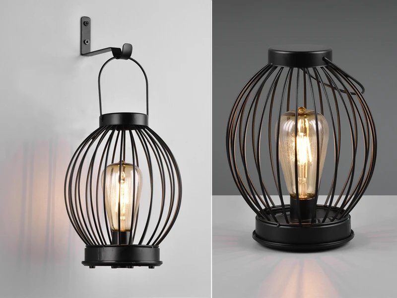 Falls Sie die Leuchte als dekorative Wandleuchte verwenden möchten, ist dem Lieferumfang ein Wandhalter aus Metall beigefügt. Ob im Garten, auf der Terrasse oder im Wohnzimmer, die Solarleuchte findet in Ihrem Zuhause ihren Platz! Das Design in Käfig-Optik aus Metall in Schwarz Matt lässt viel Spielraum für dekorative Möglichkeiten.