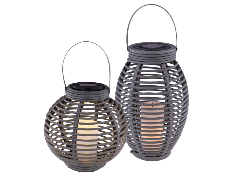 Die Rattanoptik verleiht den Außenlaternen einen natürlichen Look, der perfekt zu jedem Garten oder jeder Terrasse passt. Sie sind aus robustem Kunststoff in Grau und Taupefarben gefertigt und daher perfekt für den Außeneinsatz geeignet.