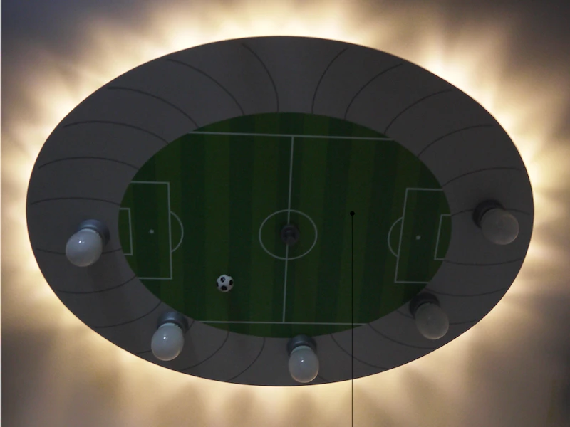 Ganz gleich ob Sie auf der Suche nach Kinderlampen für Jungen oder Kinderzimmerlampen fürs Baby sind, mit dem coolen Fußball-Feld Motiv ist diese Design Lampe für alle Kinderzimmer geeignet. Auch im Babyzimmer macht dieses Kinderlicht eine angenehme Atmosphäre.