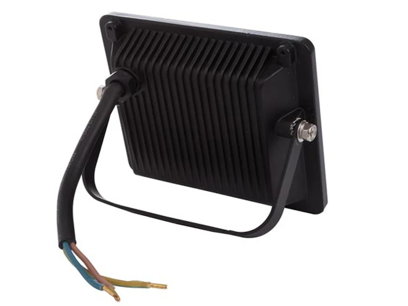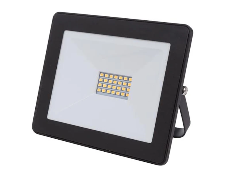 Gefertigt ist der Strahler aus robustem, schwarzem Kunststoff. Mit seinem schlanken Design nimmt er auch auf einer beengten Baustelle wenig Platz ein. Der LED Scheinwerfer ist gerade einmal 3,2 cm dick und hat ein Außenmaß von 14,5 x 11,9 cm. Dennoch überzeugt er mit einer starken Leistung von 20 Watt und 1600 Lumen in Neutralweiß.
