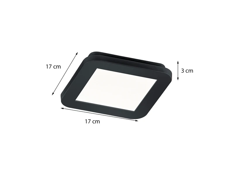 Die flache Deckenschale hat eine Höhe von nur 3cm und lässt sich mit 17x17cm prima an Decke oder Wand montieren. Dank der klassischen Farbgestaltung in Schwarz matt und dem weißem Acryl, kann die Leuchte mit vielen Einrichtungsstilen kombiniert werden.