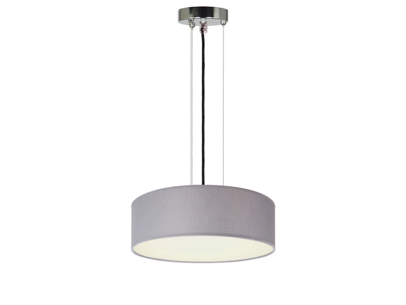 Der graue Stoffschirm verleiht der Hängeleuchte ihren ganz eigenen, stilvollen Charakter. Mit einem Schirmdurchmesser von 30 cm sowie einer kürzbaren Abhängung von 105 cm kommt das schöne Design der Pendelleuchte angenehm zur Geltung. Im Zusammenspiel mit der unteren, weißen Kunststoffabdeckung sorgt die Leuchte für ein faszinierendes Licht Ambiente.