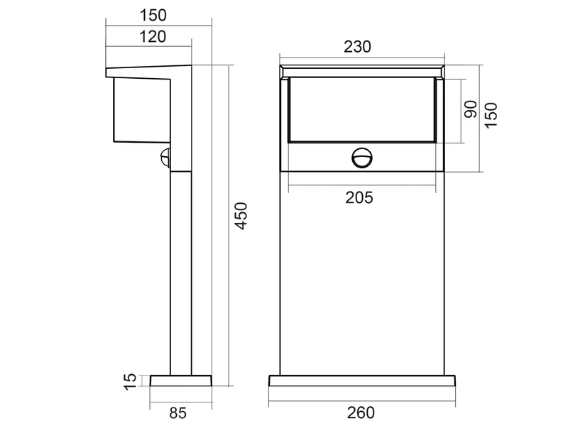 Die Außenleuchte besteht aus einem hochwertigen Druckguss Aluminium in Anthrazit sowie aus einem weißen, quaderförmigen Leuchtkörper aus Kunststoff. Mit ihrem zeitlosen Design und einer Breite von 26cm, einer Höhe von 80cm sowie einer Ausladung von 15cm, passt sie sich fast jedem Outdoorbereich an.