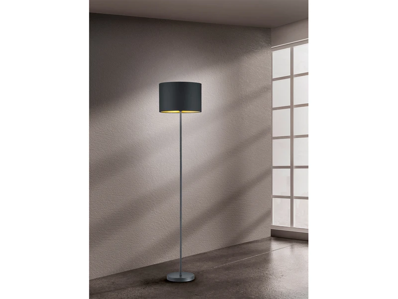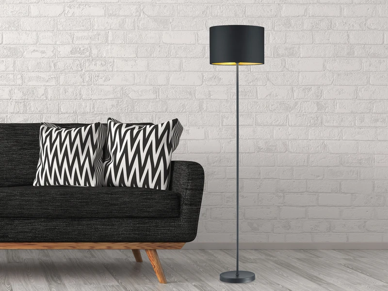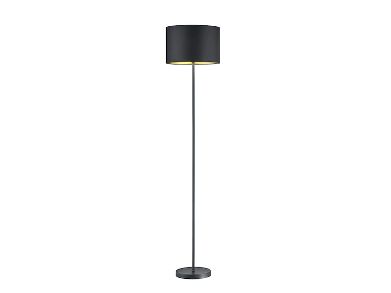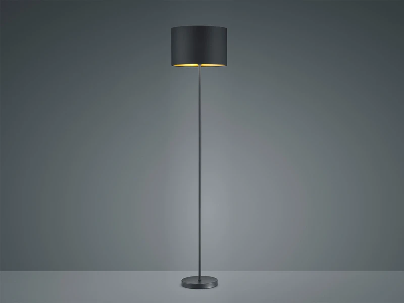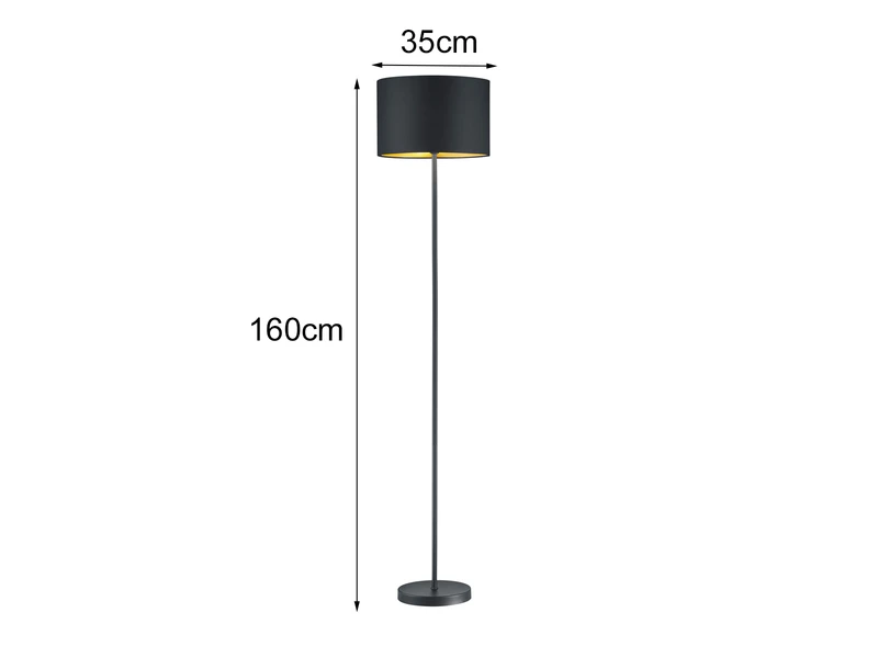 Um den Look der LED Standleuchte optimal abzurunden und dennoch ausgefallen zu gestalten, setzt man auf individuelle Details. In diesem Fall genießt der ausgefallene Stofflampenschirm mit einem Durchmesser von 35cm eine besondere Aufmerksamkeit. Die runde Leuchte knüpft an den anhaltenden Gold-Trend an, indem das Äußere der Leuchte ist in schwarz matt gehalten und das Innere des Schirms goldfarbig gestaltet ist.