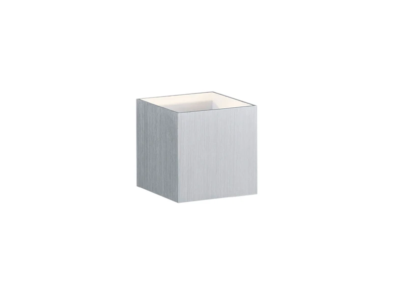 Der Kubus aus Metall mit den Massen 10 x 10 x 10 cm erscheint erscheint außen in gebürstetem Aluminium und ist innen weiß gehalten. Die integrierten OSRAM LED-Leuchtmittel verfügen über 4,5 Watt, 430 Lumen und geben mit 3000 Kelvin eine angenehm warmweiße Lichtfarbe ab.