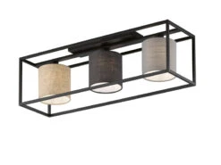 Fischer & Honsel Deckenleuchte CARRE Eckig 50x50cm Groß Mit Leinen Stoffschirm Beige
