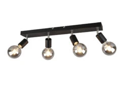 Reality Leuchten Deckenstrahler TOMMY 4 Flammig Holzsockel & Stoffschirme Schwarz Gold