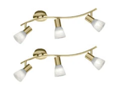 Trio Leuchten 2er Set LED Deckenstrahler 3-flammig Messing Glasschirme Schwenkbar, Breite 55cm