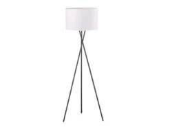 Fischer & Honsel Tripod Stehlampe WOTAN Schwarz Mit Leinenschirm Weiß Ø 45cm – Höhe 160cm