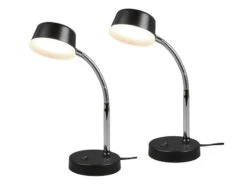 MeineWunschleuchte LED Schreibtischleuchten 2er SET Flexibel, Kunststoff Schwarz, 34cm Hoch