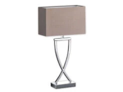 Fischer & Honsel Große Tischlampe ANNI Chrom Mit Stoffschirm Braun Eckig – Höhe 51cm