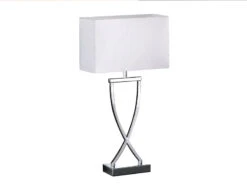 Fischer & Honsel Große Tischlampe ANNI Chrom Mit Stoffschirm Weiß Eckig – Höhe 51cm