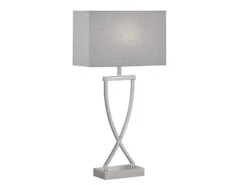 Fischer & Honsel Große Tischlampe ANNI Silber Mit Stoffschirm Grau Eckig – Höhe 51cm