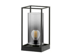 Fischer & Honsel Kleine Tischlampe DINI Rauchglas Schwarz Mit Messing – Kugel Ø 25cm