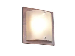 MeineWunschleuchte Flache LED Wandleuchte Holzlampe Braun Mit Glasschirm Weiß, 25×25 Cm