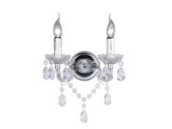 Reality Leuchten Nostalgische Wandleuchte LÜSTER 2 Flammig Chrom, Kristallbehang In Transparent